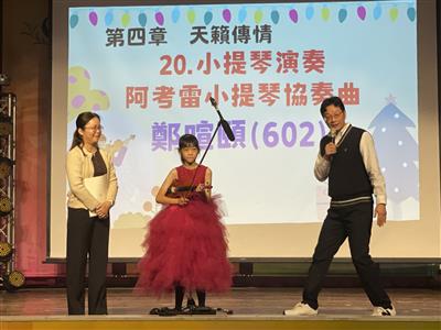 1.結合校慶活動,辦理學生才藝表演晚會,提供多元展能舞台。 2.學生依興趣準備音樂、舞蹈、戲劇等表演,並安排社團成果展演。 3.鼓勵家長陪伴孩子練習與準備,促進家庭支持與正向互動。 4.透過舞台表現學習自信表達、團隊合作與責任感。